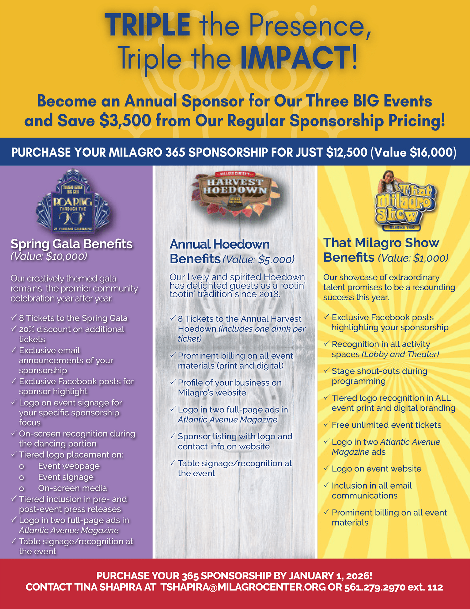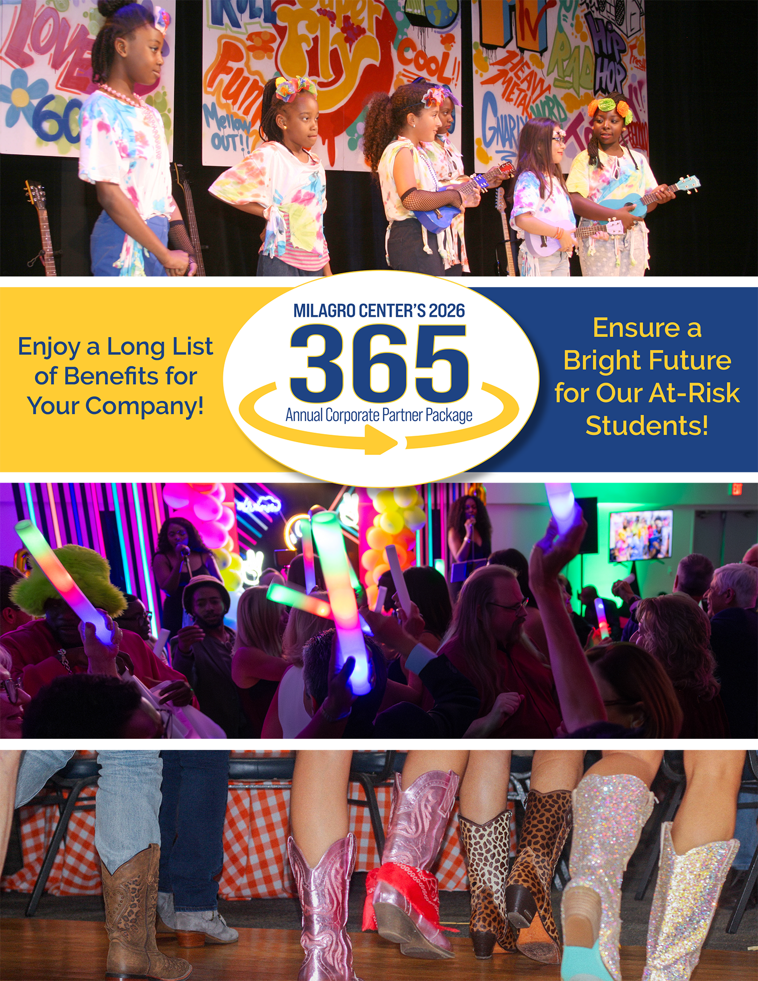 Here’s your opportunity to expose your brand to thousands of local consumers AND change the live of underserved youth through Milagro Center’s 365 Annual Corporate Partner Package!