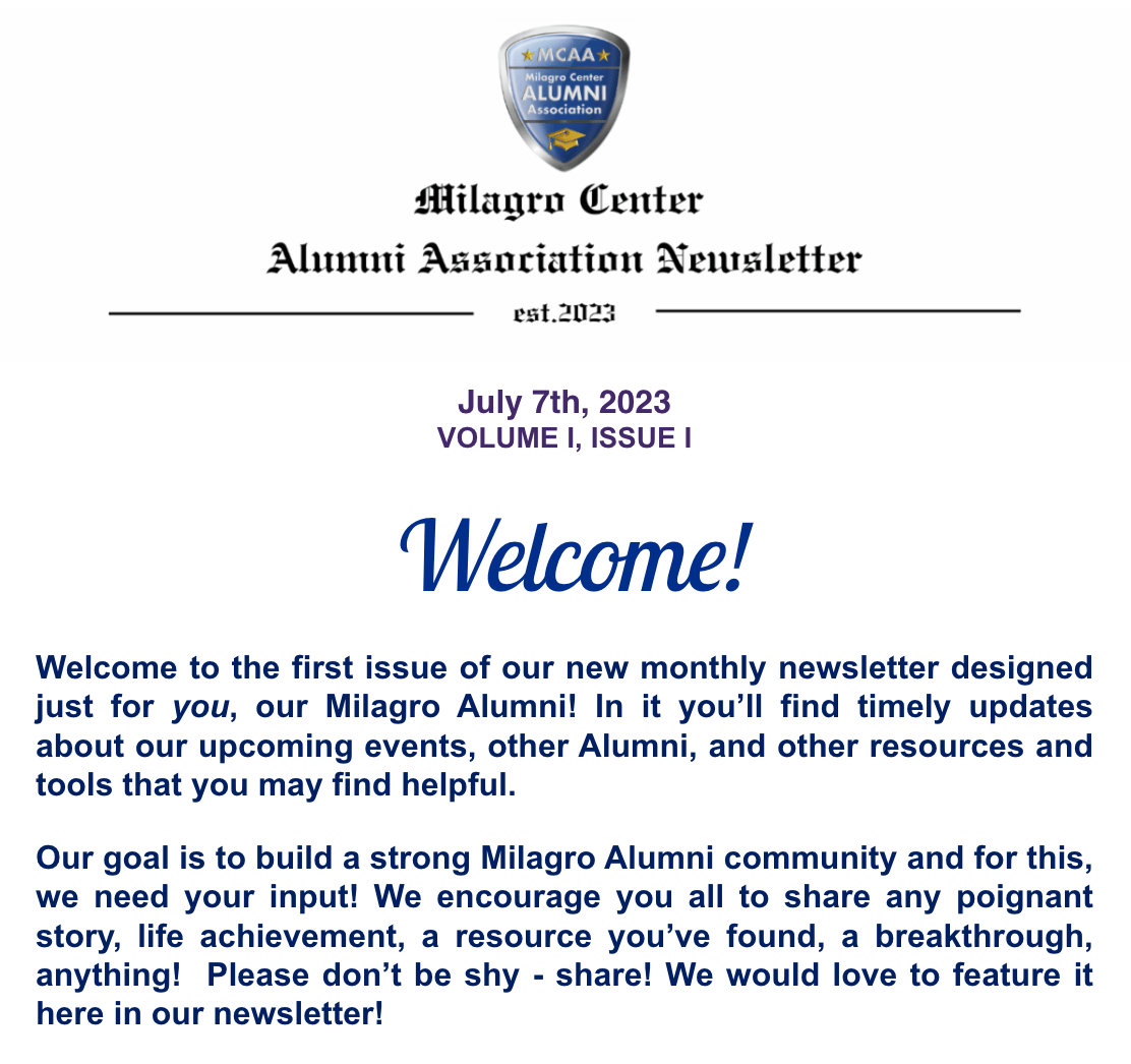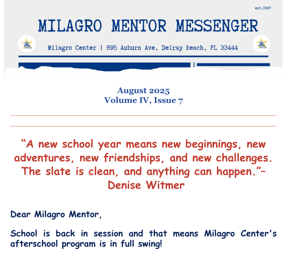 Read Our Milagro Mentor Messenger Newsletter Issues Here!